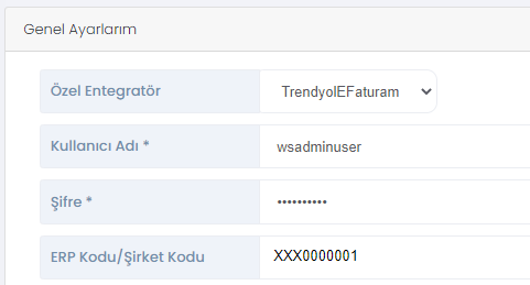 E-Fatura Ayarları’na Trendyol E-Faturam’dan gelecek entegrasyon bilgilerini tanımlayın.